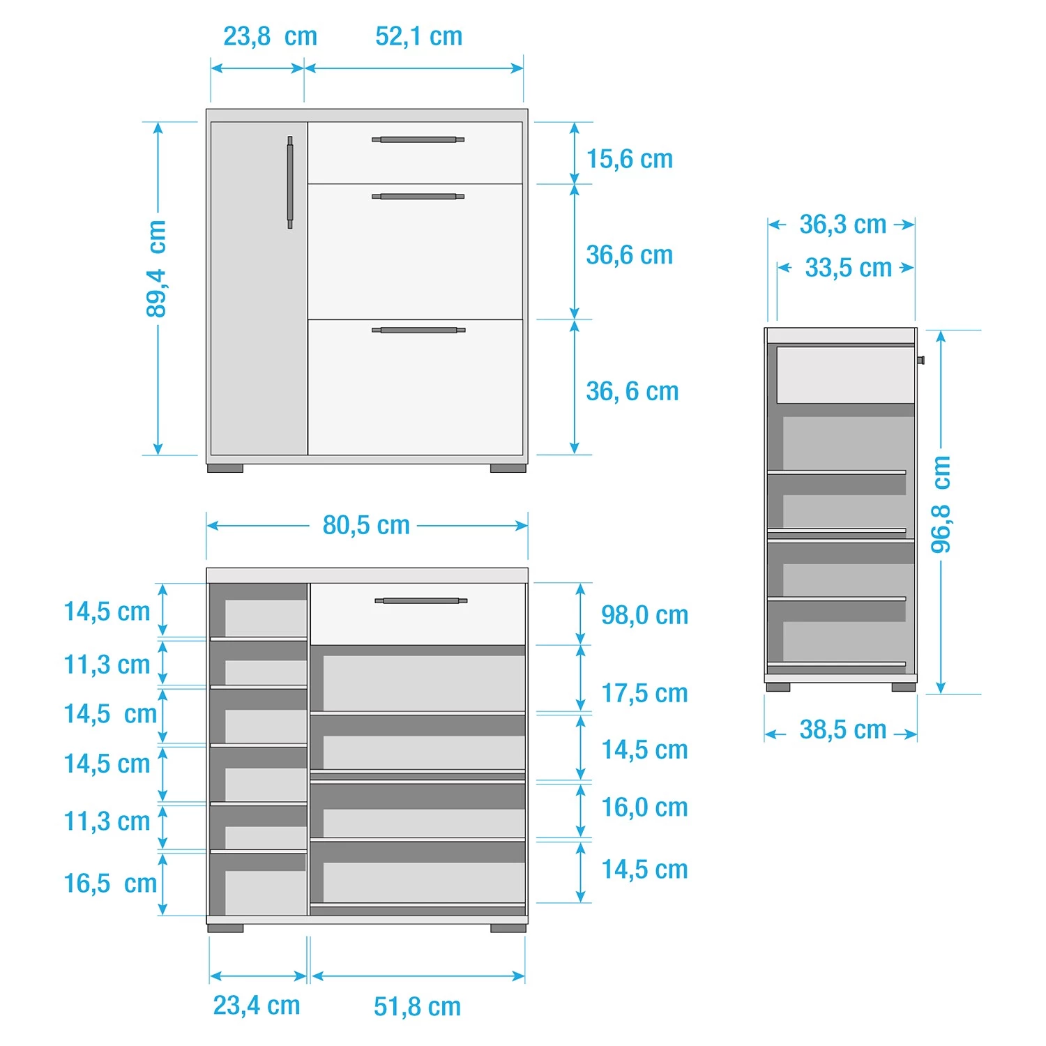 - Dimensions intérieures du tiroir : 47,8 x 33,5 x 9,8 cm