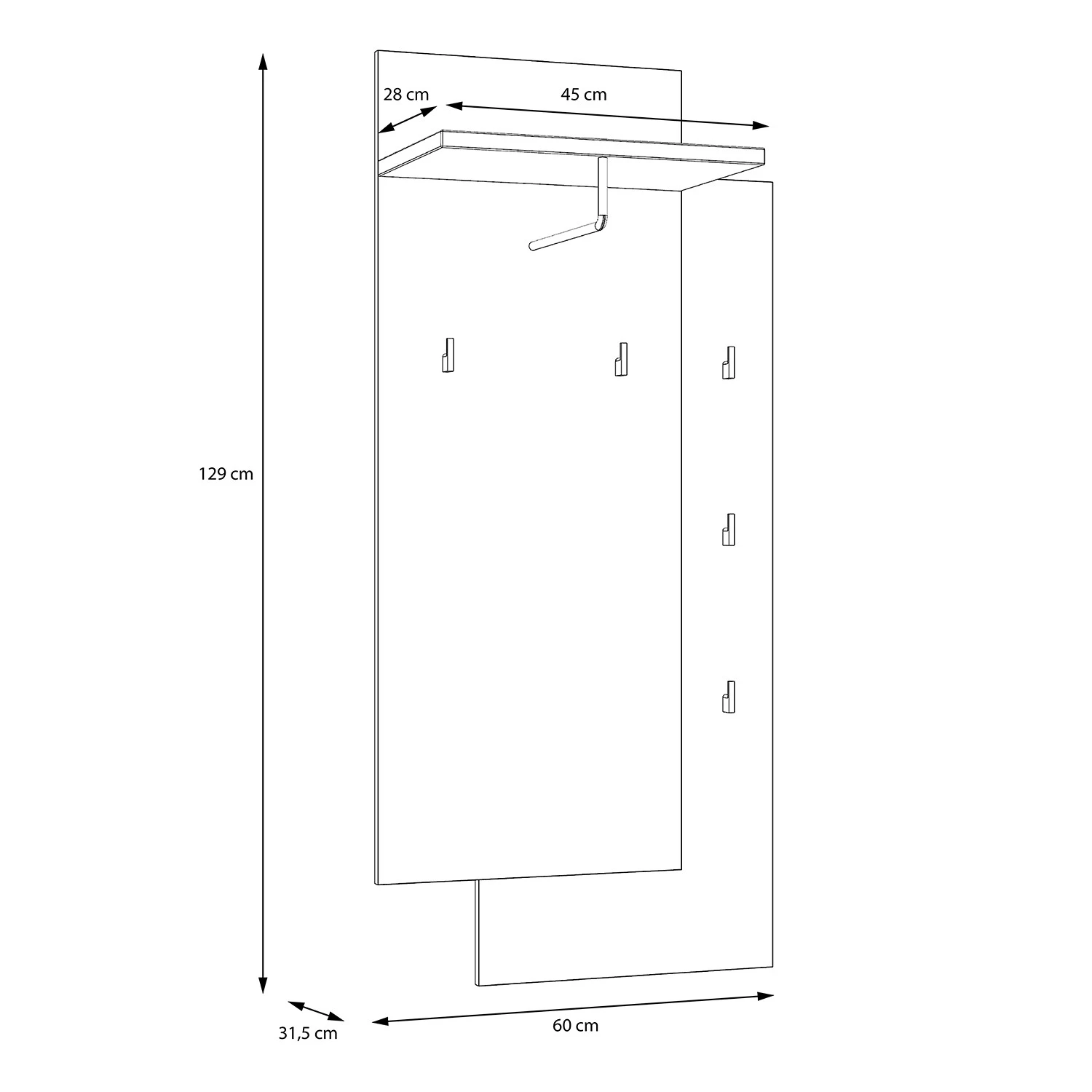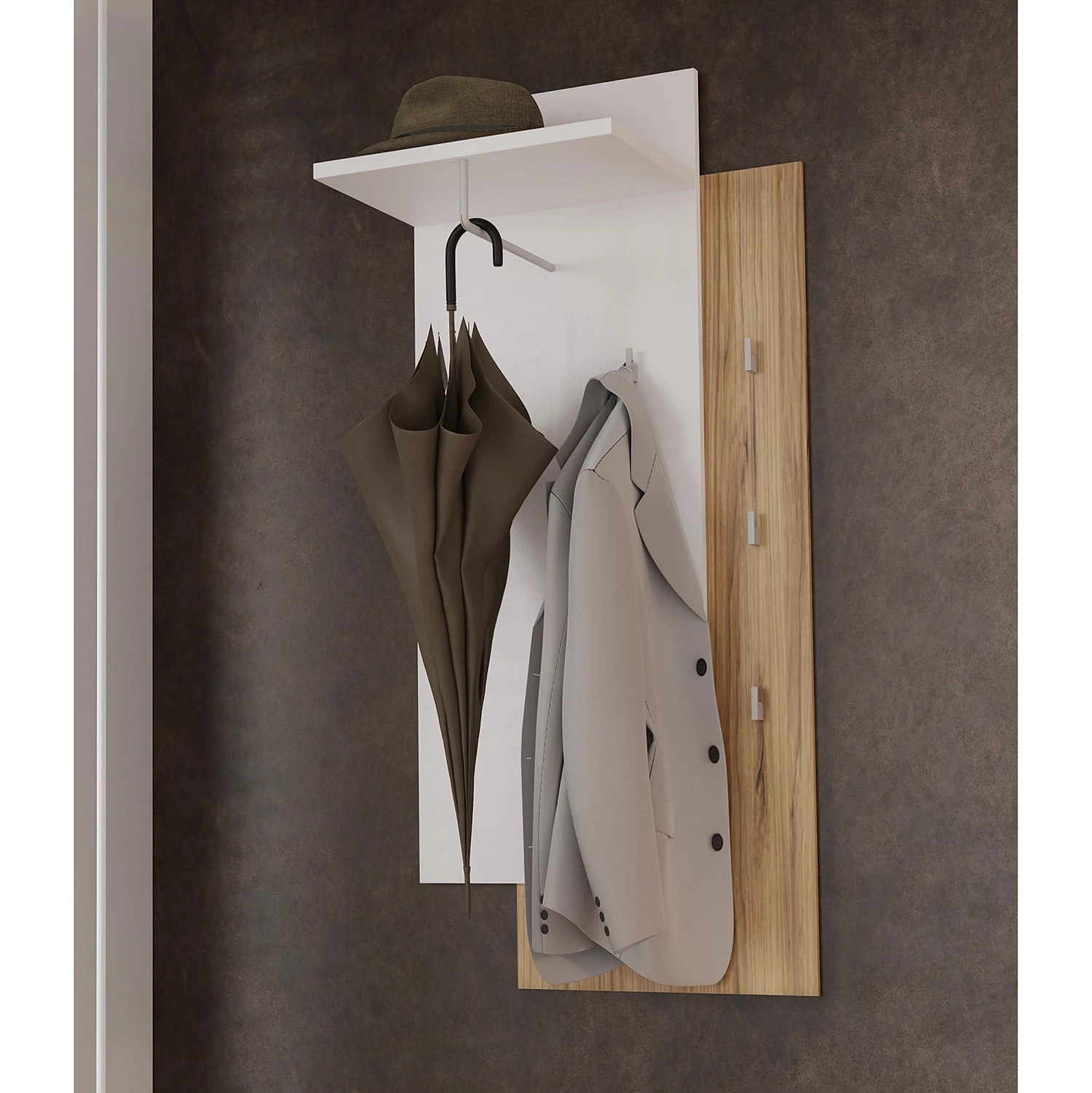 - Panneau et étagère : blanc / imitation chêne