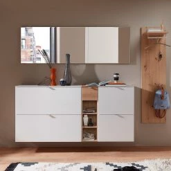 Loftscape Porte-manteau mural Mundai – Blanc alpin / Imitation chêne de Wotan
