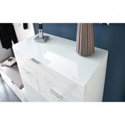 Maja Möbel Meuble à chaussures Shino II – Verre – Blanc / Imitation chêne