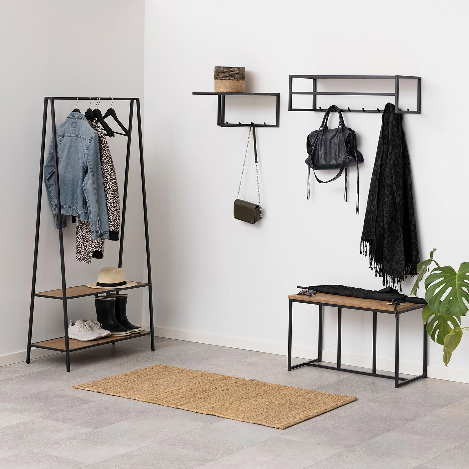 - Tringle, crochets à vêtements et structure : noir